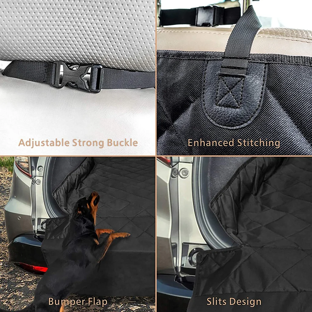 Waterproof Cargo Liner: 4 water-resistant layers quilted, WATERPROOF and protects your car seat from pet dander, hair, spills, oders, mud and water; Easy to clean just by wiping away dirt or vacuuming, washable