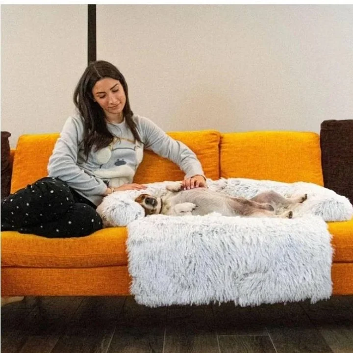 4-in-1 Multifunctional Dog Bed: You can put it on the sofa as a sofa cover to protect the sofa from scratches by dogs. When it is placed on the ground, it becomes a comfortable plush sofa and at the same time a mat. Cover the extra blanket on the dog to prevent the dog from catching cold at night. You can also roll up the extra part, then it becomes a comfortable dog bed.